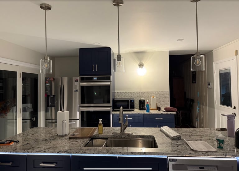 The project began with a full demolition of our outdated kitchen — cabinets, flooring, lights, and even some ceiling modifications. The company handled it with precision and care, keeping the space clean and safe throughout the process. They worked quickly but thoroughly, ensuring the area was prepped perfectly for reconstruction.